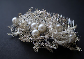 You want something exclusive and unique? Bridal hair combs decorated with crochet silver and pearls. Pearls are wrapped in handmade silver net and look like your neck is wrapped in mystery flower. It‘s original technique makes this handmade wedding jewelry unique and charming. This is a family tradition passed down from my grandmother to my mother so we adopted it for crocheted with silver plated wire. Each crochet piece in this necklace is unique because it‘s impossible to reproduce another one that is exactly identical. So you will be the only one that has one: